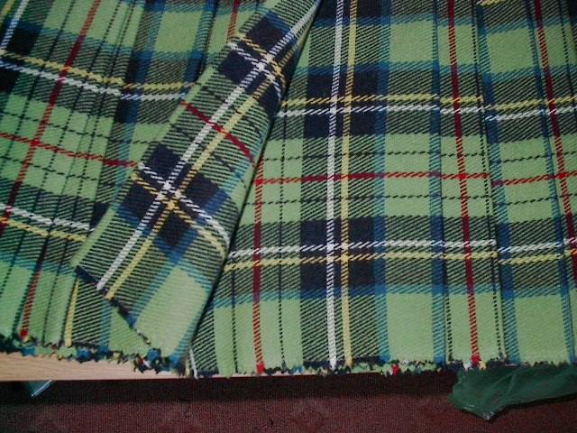 Hier ein Beispiel für einen echten Kilt. Vorne Glatt, Hinten aufwendig in Falten gelegt Ein Kilt wird normalerweise nicht gesäumt. Bei manchen Stoffen muß man es leider machen, da die Weberei entweder eine Schreibleiste oder eine farblich nicht passende Webkante eingearbeitet hat. In solchen Fällen wird die Webkante abgeschnitten und mit einer Overlook-Maschine gesichert und umgesäumt. | |||||||||||||||||||||||||||||||||||||||||||||||||||||||||||||||||||||||||||||||||||||||||||